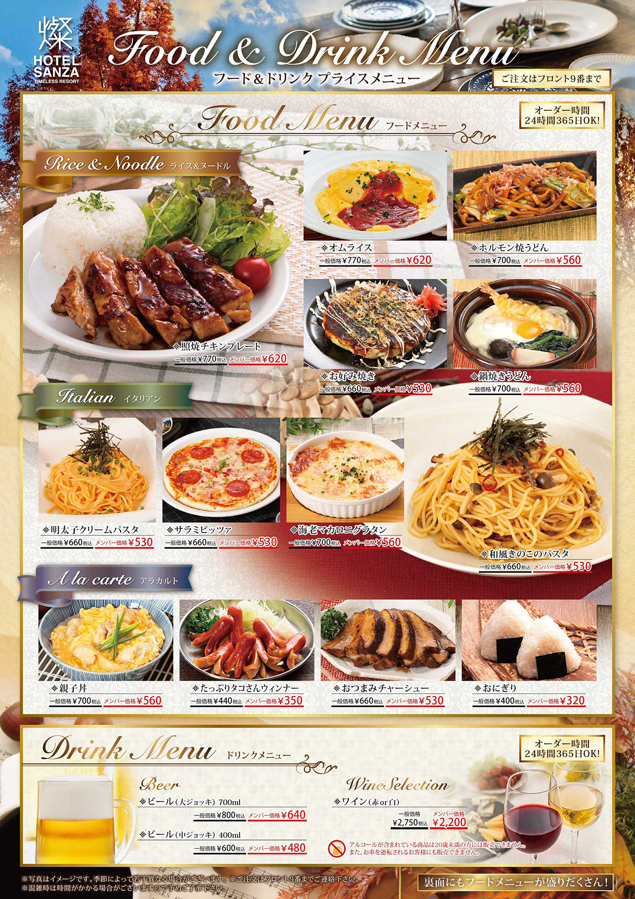 TOP ROOM&PPRICE EVENT FACILITY&SERVICE MEMBERS ACCESS&INFOMATION お問合せ サービス&設備 ◆◆◇◇ホテル SANZA サービス&設備のご案内ページです◇◇◆◆